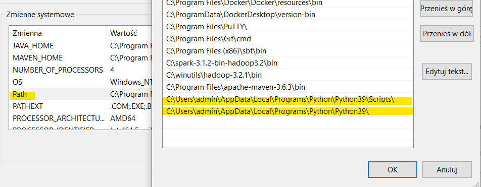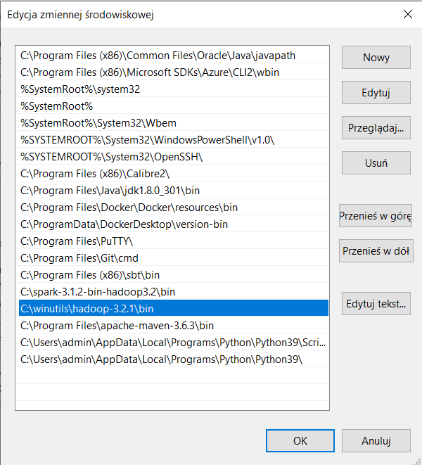 • Dodaj HADOOP_HOME do Zmienne Systemowe