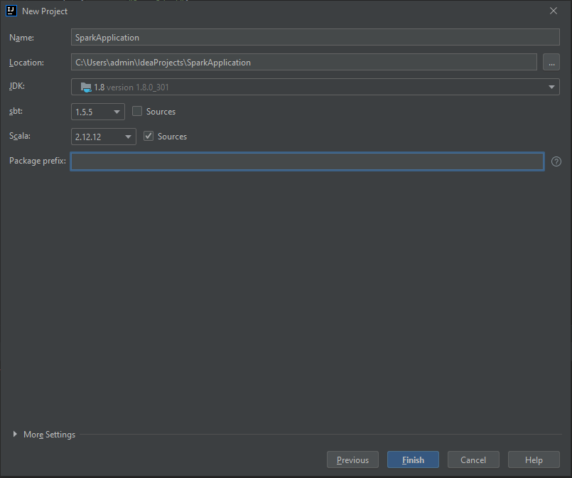1. Podaj nazwę projektu „<SparkApplication>.”
